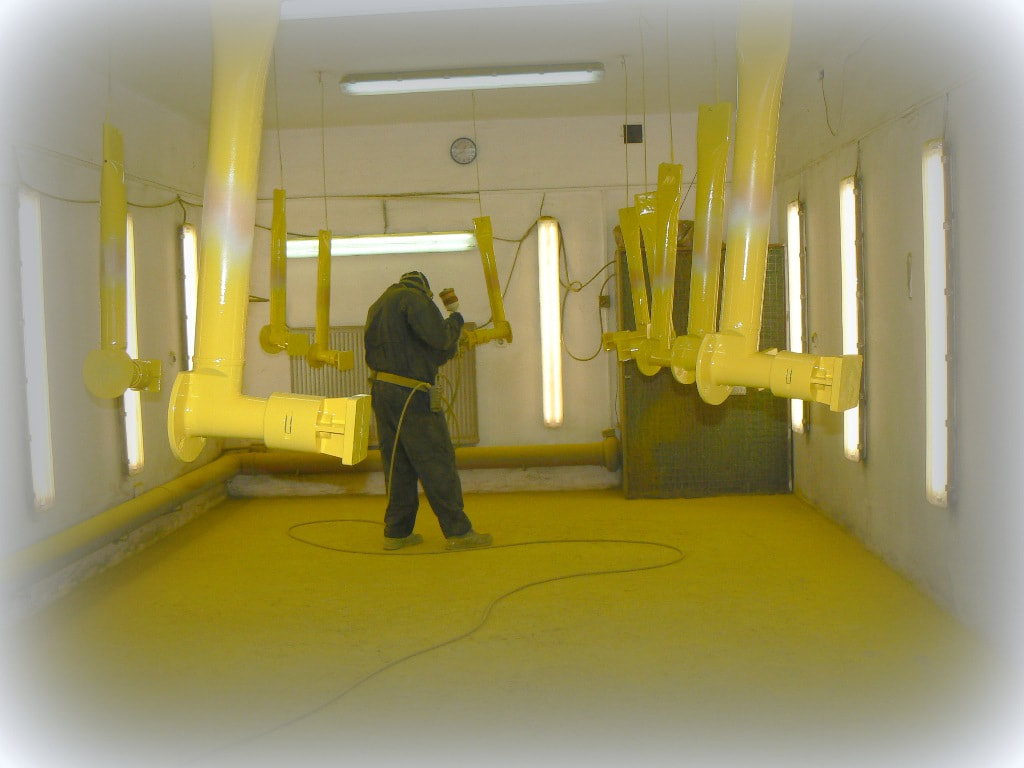 Zapewniamy również usługę piaskowania, o ile taka jest konieczna. Robimy wszystko co możliwe, aby czas między piaskowaniem, a lakierowaniem skracać do niezbędnego minimum, żeby piaskowane elementy były jak najmniej narażone na wilgoć z powietrza. Stosujemy zawsze podkłady cynkowe i epoksydowe przed nałożeniem właściwego koloru. Do aplikacji proszkowych używamy urządzeń firmy Gema (wg nas najlepszych na świecie).